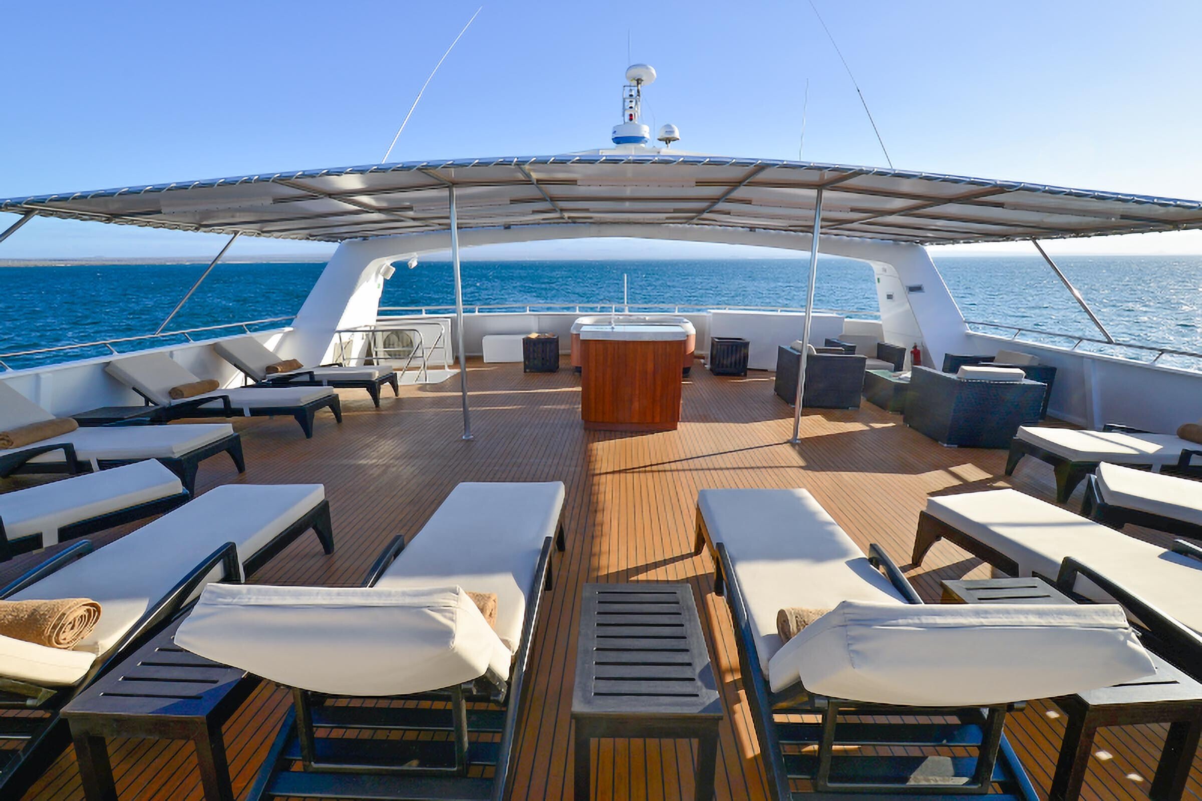 Accommodating 16 guests, the intimate, comfortable and stylish National Geographic Delfina features an Observation Deck, a wrap-around Upper Deck with al fresco dining and access to the bow, open-air stairs between decks and a compact marina to gear up for snorkeling excursions.