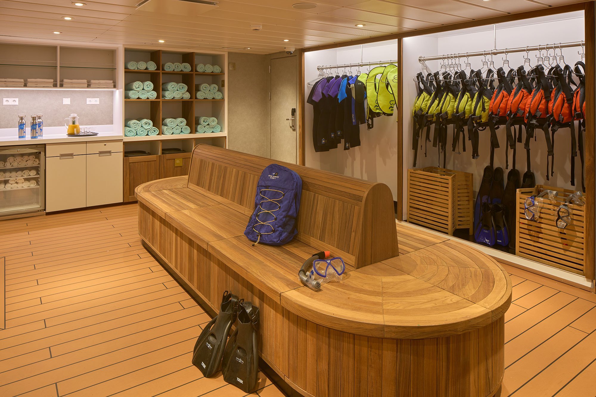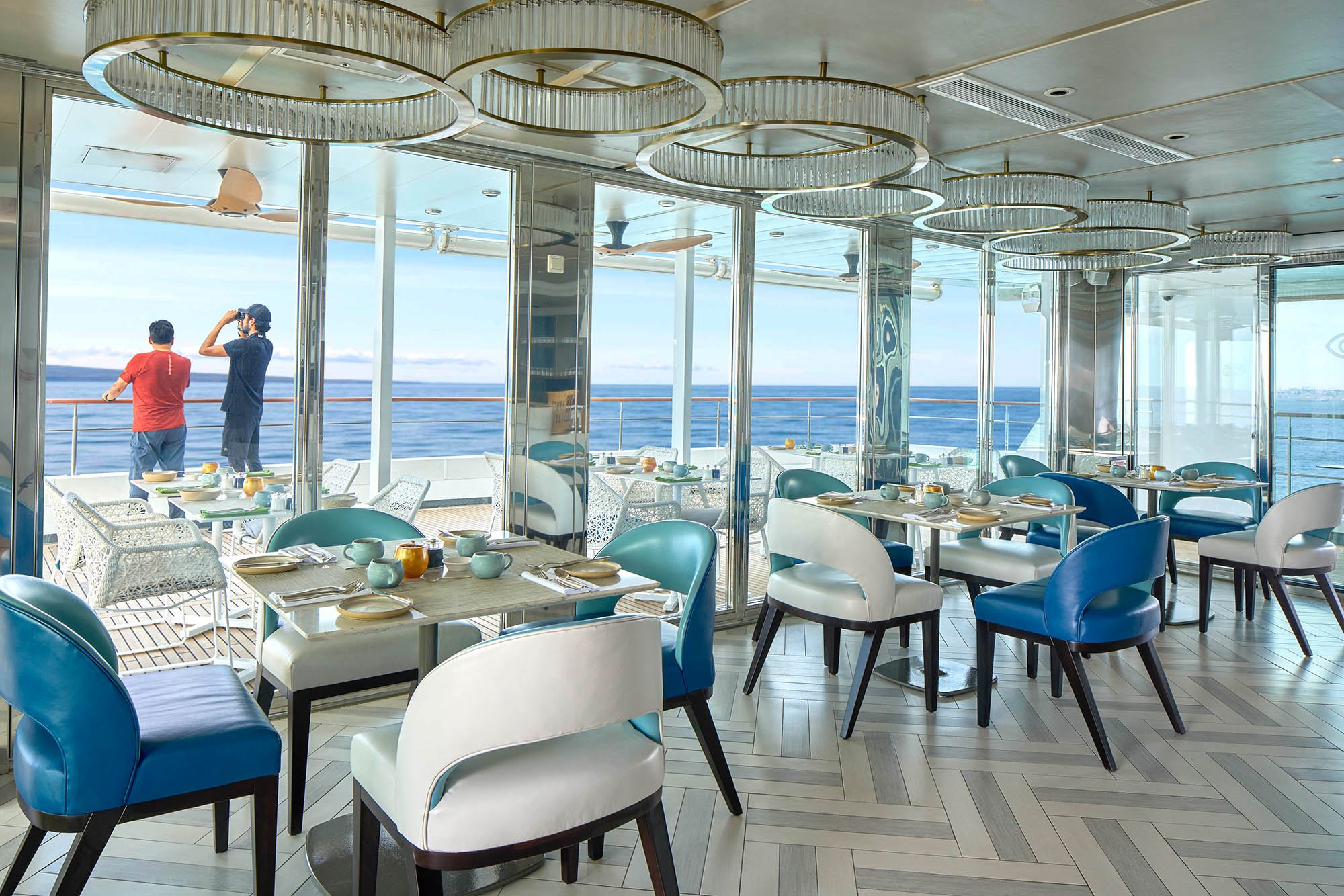 Special features include teak decks, indoor-outdoor dining options, an impressive observation deck, and new amenities like a climate-controlled marina and a dedicated science hub.