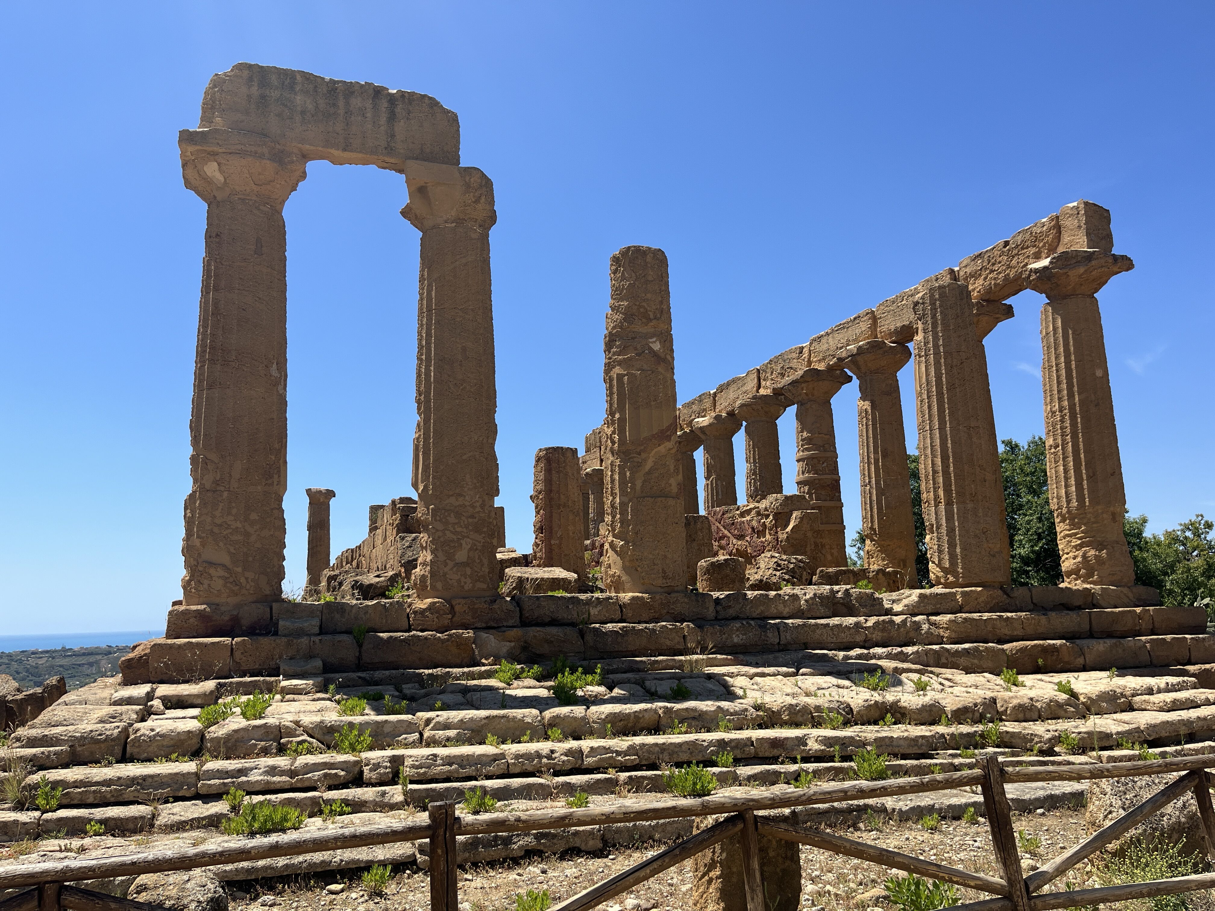 We docked in Port Empedocle, named after the great Greek pre-Socratic philosopher, and could see the line of extraordinary temples in Agrigento awaiting our visit. This part of Sicily from the mid-5th century BC was settled by Greeks and called Magna Graecia. The temples are all deliberately situated on a ridge, which allowed the ancient Greeks to vaunt their wealth and artistic skill. Originally, there may have been nine temples dedicated to the Olympian Gods. We began our visit at the temple of Hera, Zeus’s consort. This temple is in the severe Doric style and dates from between 450-430 BC. The site was continually inhabited until the 14th century. The Byzantines built their cemeteries in vaults hollowed out of the ancient walls. The Temple Concordia is the best preserved of the temples and is also in the Doric style. It dates from the mid-5th century and was converted by Christians in the 6th century and renamed the Church of Saints Peter and Paul. Its conversion to a church likely contributed to its excellent state of preservation.