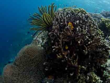 After breakfast we climbed into Zodiacs and sped off through a maze of vertical islands. The soft morning light spilled onto islands highlighting a fantastic array of ferns, orchids, palms, and insect eating pitcher plants. An enticing look into the ocean hinted at an even greater diversity of life as multi-colored sponges, brightly lit corals, and a dizzying number of fish sparkled below.
