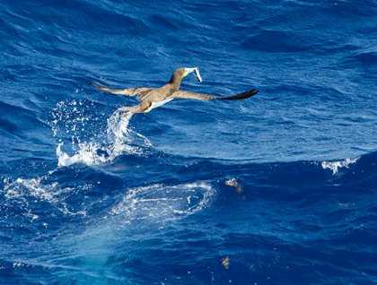 Exuberant in the high winds and seas were also the flying fish, skimming and sailing across the wave crests.  Brown boobies and masked boobies plunged after them using their finely tuned binocular vision and depth perception, while the occasional frigate bird would try to scoop one in flight or steal the catch of a booby.