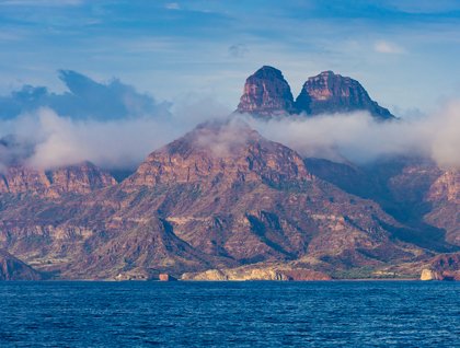 An exhilarating aspect of ship travel is that you can wake up in a completely different place every single day. Our first morning aboard the National Geographic Sea Bird found us between Isla San José and the Baja California Peninsula. A striking collage of silvery grays painted the sky as the sun tried to peek through the dense clouds. Several groups of long-beaked common dolphins approached the ship to ride the bow wave. Dozens of mobula rays drifted around us. These are smaller versions of the better-known manta. We noticed the tips of their pectoral fins protruding above the water as we slipped past. Several leaped clear of the surface and created conspicuous splashes in the process. The ship continued north into open water where unexpected wind and big swells enveloped us. To make the best of this situation, we bee-lined for a sheltered anchorage at Bahía Elephante on Isla Santa Catalina to spend the remainder of the day snorkeling and hiking.