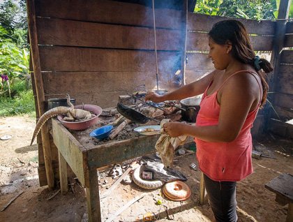 The crossing of the sandbar that has ruled our timing over the past few days, only to be undertaken at high tide, is a non-event, and we are now in the mouth of the Kumai River. Lunch is our main preoccupation while we sail the 23 miles upstream to dock in the port of Kumai where we are received like royalty by the locals.