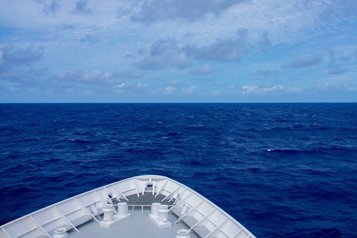 Day four of our expedition, National Geographic Orion brings us from the Marquesas Islands in French Polynesia to the Big Island of Hawaii. Our small team of explorers kept surprisingly busy with activities on every deck of the ship from early morning to late at night. The energy of our high-spirited team rose in tandem with the warm Pacific sun. Many guests attended stretch class, hit the gym, and bird watched from the ship’s bow. Throughout the day we had fascinating presentations that were well attended, yet many of us also took time over research of our own, expanding our knowledge of the locales of this trip in the ship’s library. With sunny skies and the vast blue ocean at every vantage, it’s hard to stray from admiring our surroundings out here. Sea birds were observed and identified throughout the day, including the likes of masked boobies, black-winged petrels, red-tailed tropicbirds, sooty terns, and wedge-tailed shearwaters. One notable yet unexpected sight was seeing a cargo ship for the first time on our journey to Hawaii, named Forest Symphony and well on its way to Chile. We have seen almost no other boats or ships, making the sighting a rare one. By the end of today, we had already sailed over 1,300 nautical miles; near a quarter of which had been covered on Monday alone. The wind was noticeably stronger in the morning, averaging between 22 and 25 knots from the northeast, then easing off in the afternoon. All day we felt the ship moving beneath our feet with a swell average of 2 to 3 meters. Though there were moments of rain and wind, the ocean water temperature was a comfortable 84 degrees Fahrenheit. We are still in paradise!