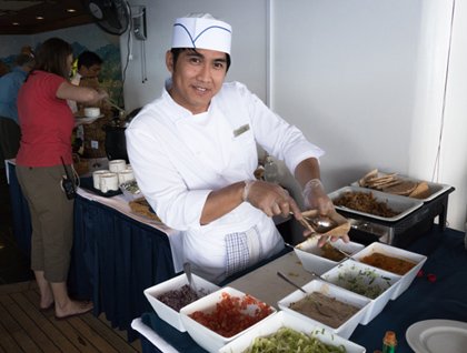 Whether it’s a Pina Colada or a coffee, Ray is always on hand at the bar to serve up whatever you wish. With our drinks in hand we settled down to enjoy Kevin Schafer’s insights into the challenges a photographer encounters when attempting to shoot great images out in the field. Having a National Geographic photographer accompanying us on our journey is a super addition to the trip and to listen to Kevin detail the more difficult aspects of his work reassured us that even the experts can find it difficult to get the perfect shot at times.