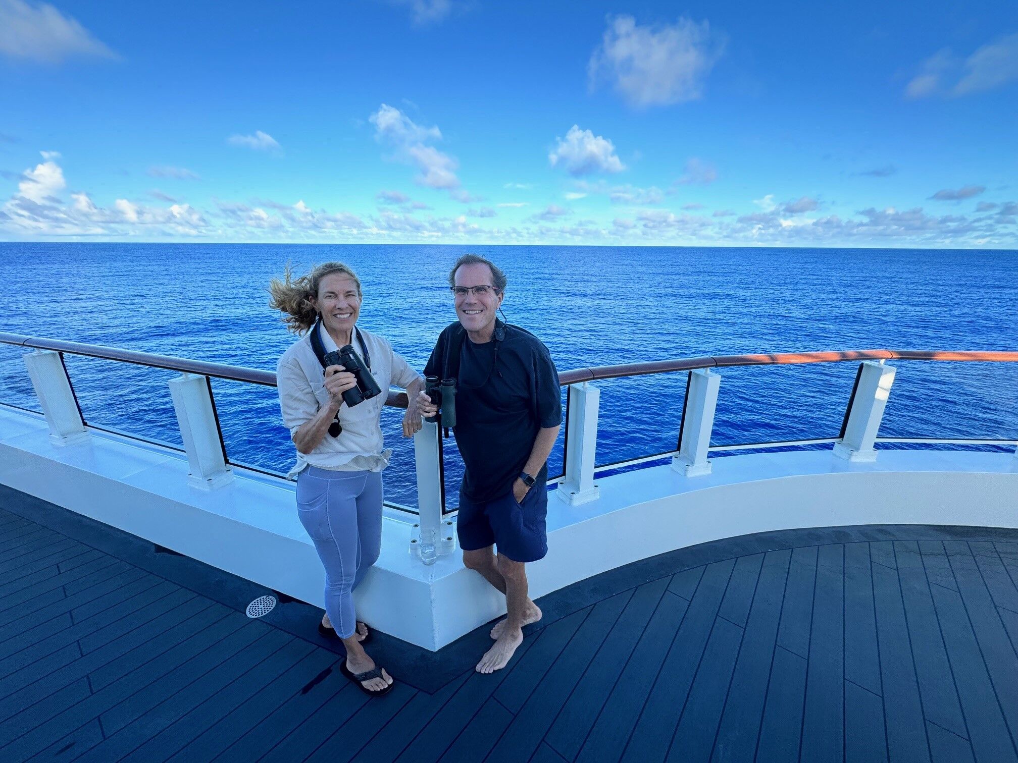 Photo caption: Guests enjoy some birdwatching from the top deck.