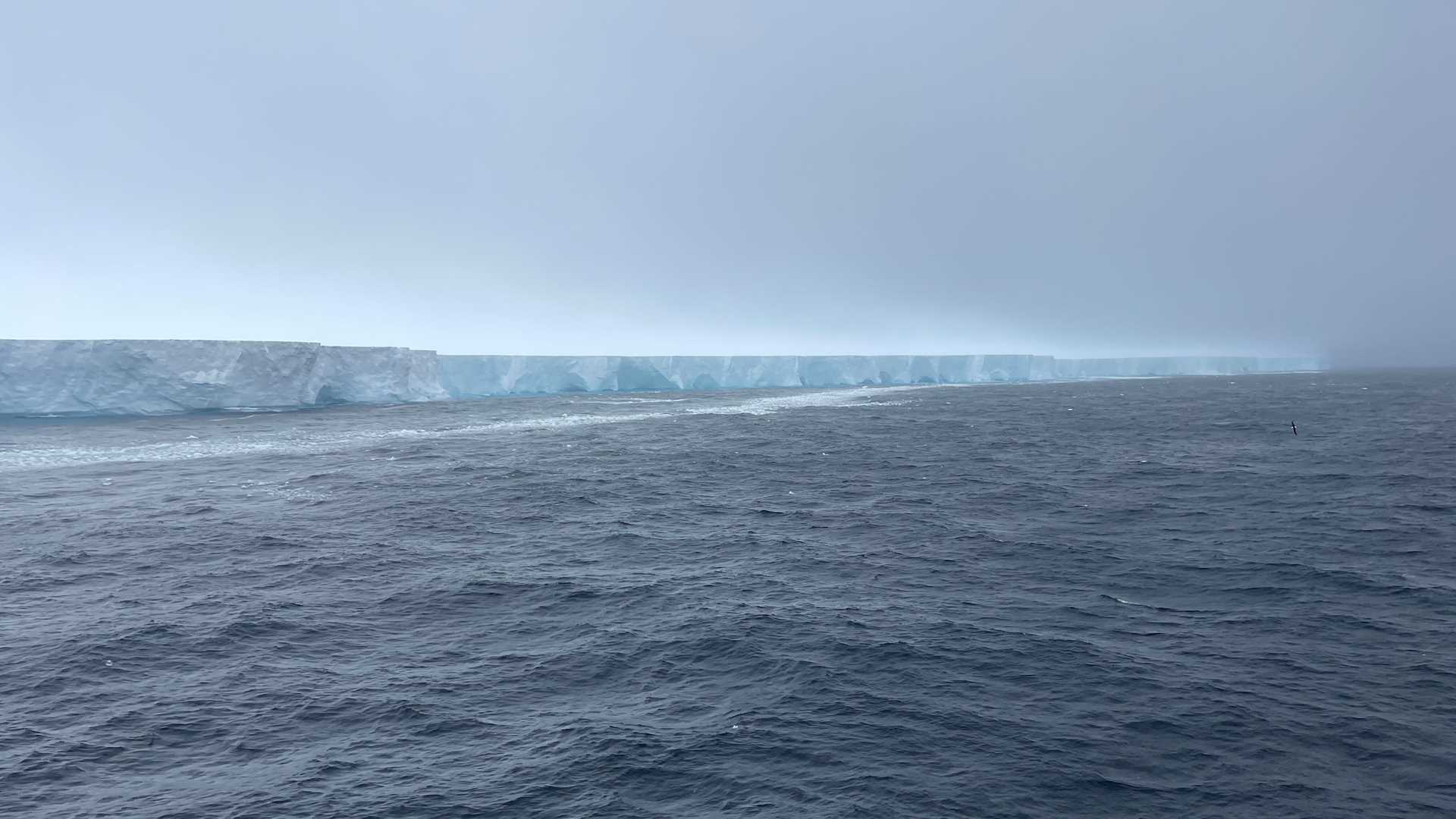 We woke up this morning next to the largest iceberg that currently exists on the planet, A23a. It was a foggy morning, but as we approached the large tabular iceberg, the microclimate of this massive piece of ice lifted the fog enough for us to see the ice edge that kept going as far as the eye could see. This was the most momentous event of our day as we headed toward the South Orkney Islands, and the fog moved in and stuck around the ship for the rest of the day.