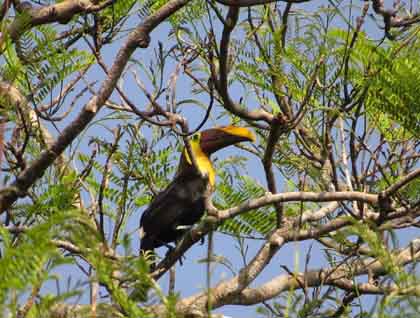 After breakfast was over, we started heading farther into Atun Poza, in order to find out what Mother Nature had in store for us. Ringed kingfishers, red-capped cardinals, short-tail parrots, and black-collared hawks where spotted all over the place, making for a marvelous outing. As we were preparing to head back to Delfin II, a troop of four monk-saki monkeys gave us a spectacular show as they jumped from one branch to the other.