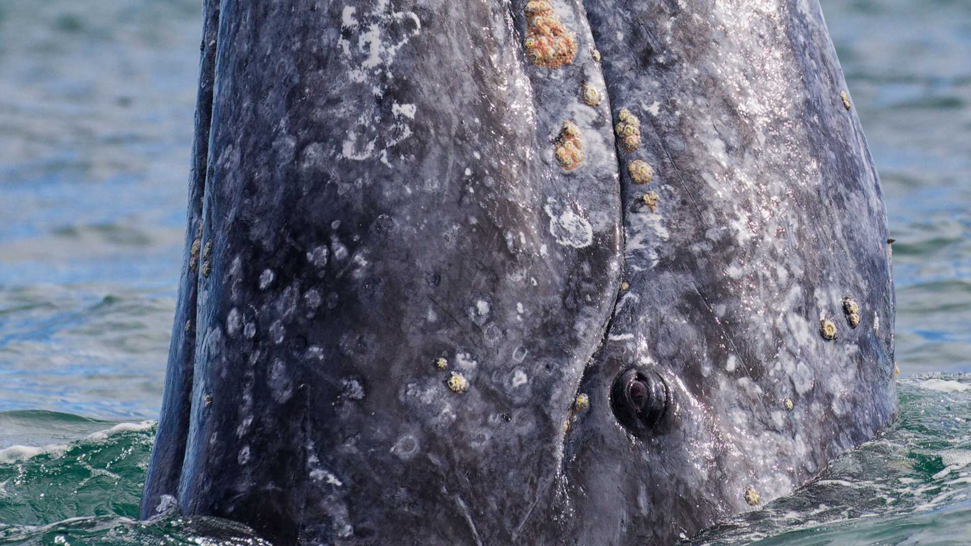 Today was a whale of a day, beginning with an absolutely breathtaking sunrise. It proved to be a good omen for our morning and afternoon panga-cruising in Bahia Almejas, an area where immature male and female gray whales cavort and mature males and females get together. It’s sort of like a middle school recess meeting a singles club.