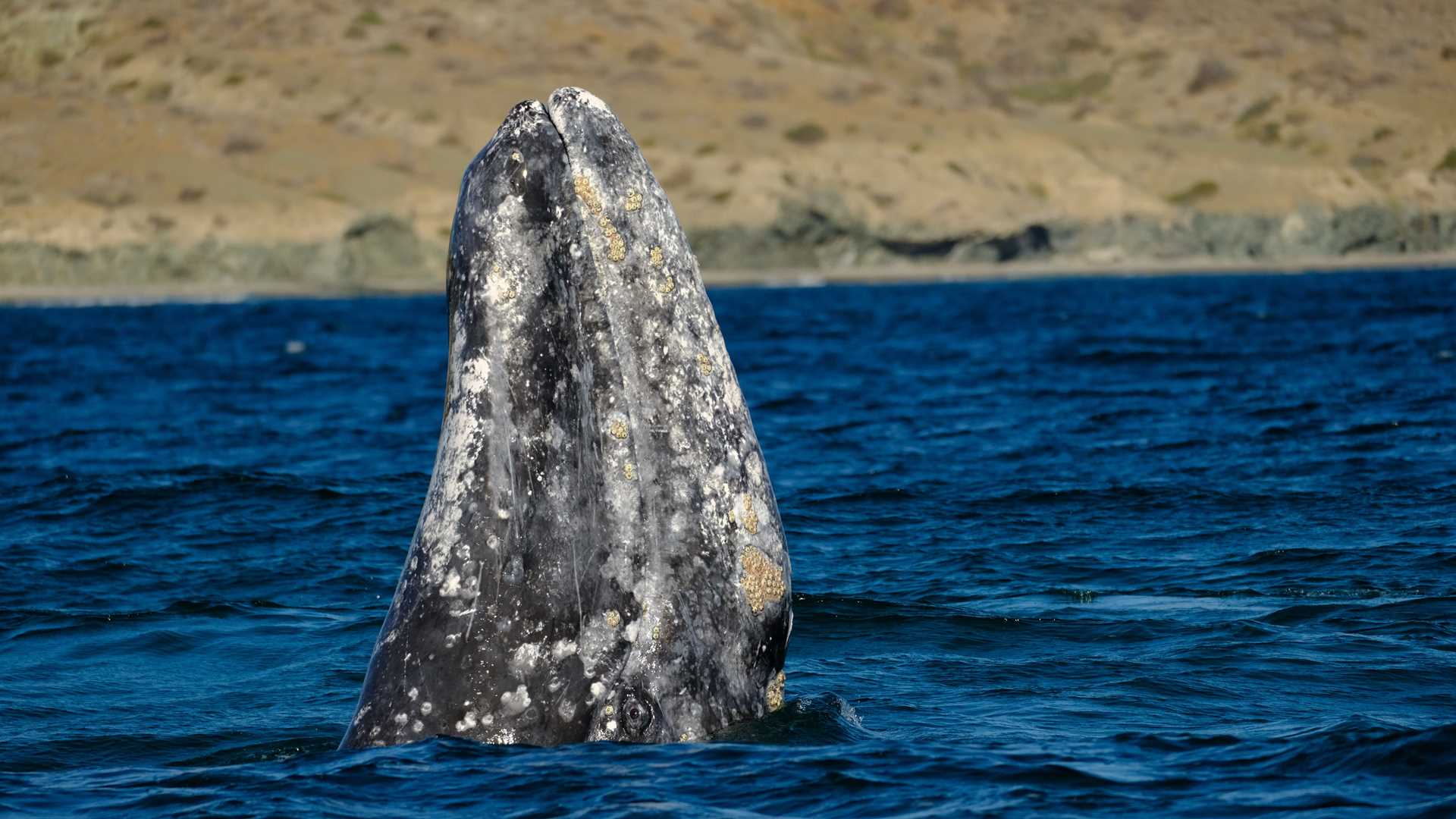 We spent the morning in pangas watching gray whales in Bahia Almejas, at the southernmost part of Magdalena Bay. Pelicans, frigatebirds, and cormorants were too numerous to count, and we had excellent looks at dozens of gray whales — they were surfacing, blowing, and repeatedly “spyhopping” (lifting their heads out of the water).