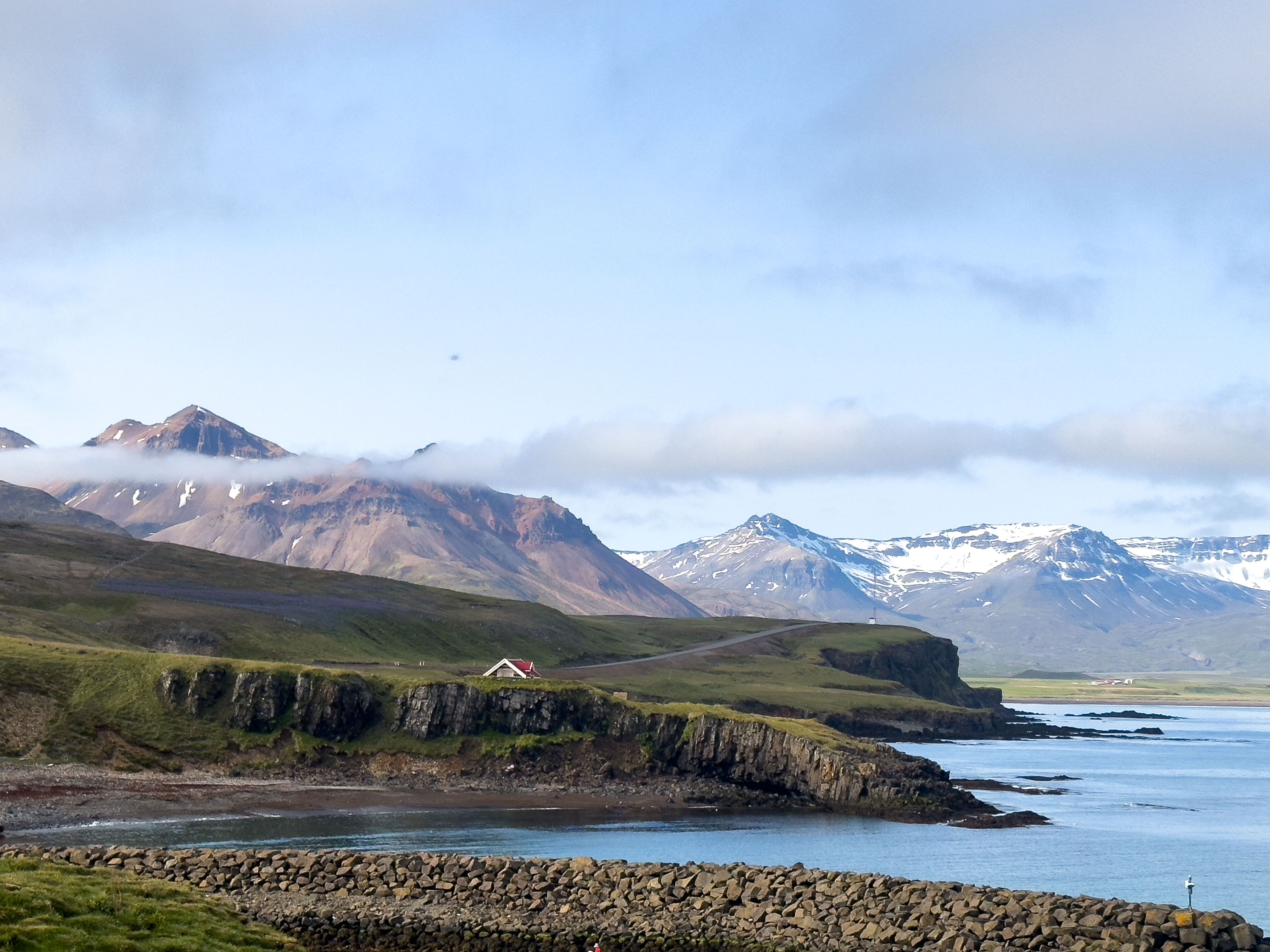 National Geographic Explorer sailed into Borgarfjörður Eystri early in the morning, and fog was still covering the whole landscape. Fog is a specialty of the East Fjords of Iceland and can sometimes settle for days. But we were fortunate, and it lifted as the morning passed. We had a lot of activities planned, including hiking, mountain biking, and nature walks. We wandered the trails covered in Nootka lupine and wild native flowers. We observed many birds, like the golden plover, the whimbrel, and the black-tailed godwit. These birds landed on the trail repeatedly for us. As the morning went on, temperatures rose, and it became sunnier and sunnier! We took advantage of some free time in the afternoon with an opportunity to visit “Puffin Hill.” The boardwalk allowed us to get quite close to the puffins, and we could see them coming and going from their burrows with their beaks full of fish for their young pufflings. We also visited the lovely hamlet of Bakkagerði and enjoyed a tasting at the local brewery. It was an absolutely perfect day, filled with nature, wildlife, and meeting the locals.