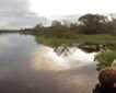 During lunch the ship moves towards our afternoon stop, a small islet called Chinese Hat. The same stark volcanic features dominate our view, and once more we head out for snorkeling. This time many of us have a more lasting encounter with penguins, since there are several in the calm waters, seemingly careless about our presence, hunting the small anchovies that litter our underwater view.