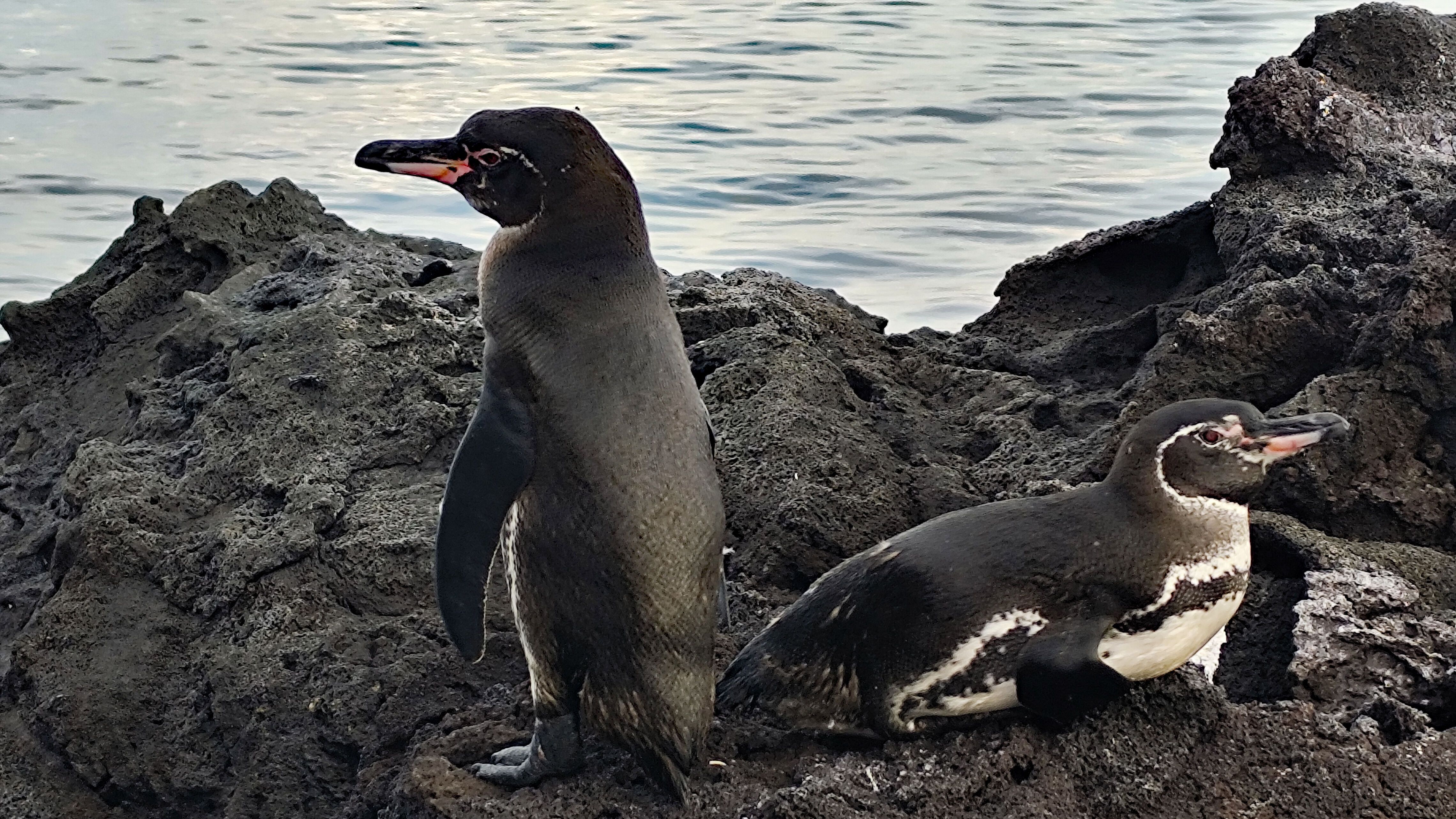 We woke up early today to climb to the summit of Bartolome Island. Once you get to the top the view is breathtaking; the scenery is so dramatic and full of volcanic formations, it looks like the moon or Mars. Along the shoreline we found many Galapagos penguins fishing in the water and basking on the black rocky lava. Later on the beach, we had a lot of fun swimming, snorkeling, and strolling along the shore.