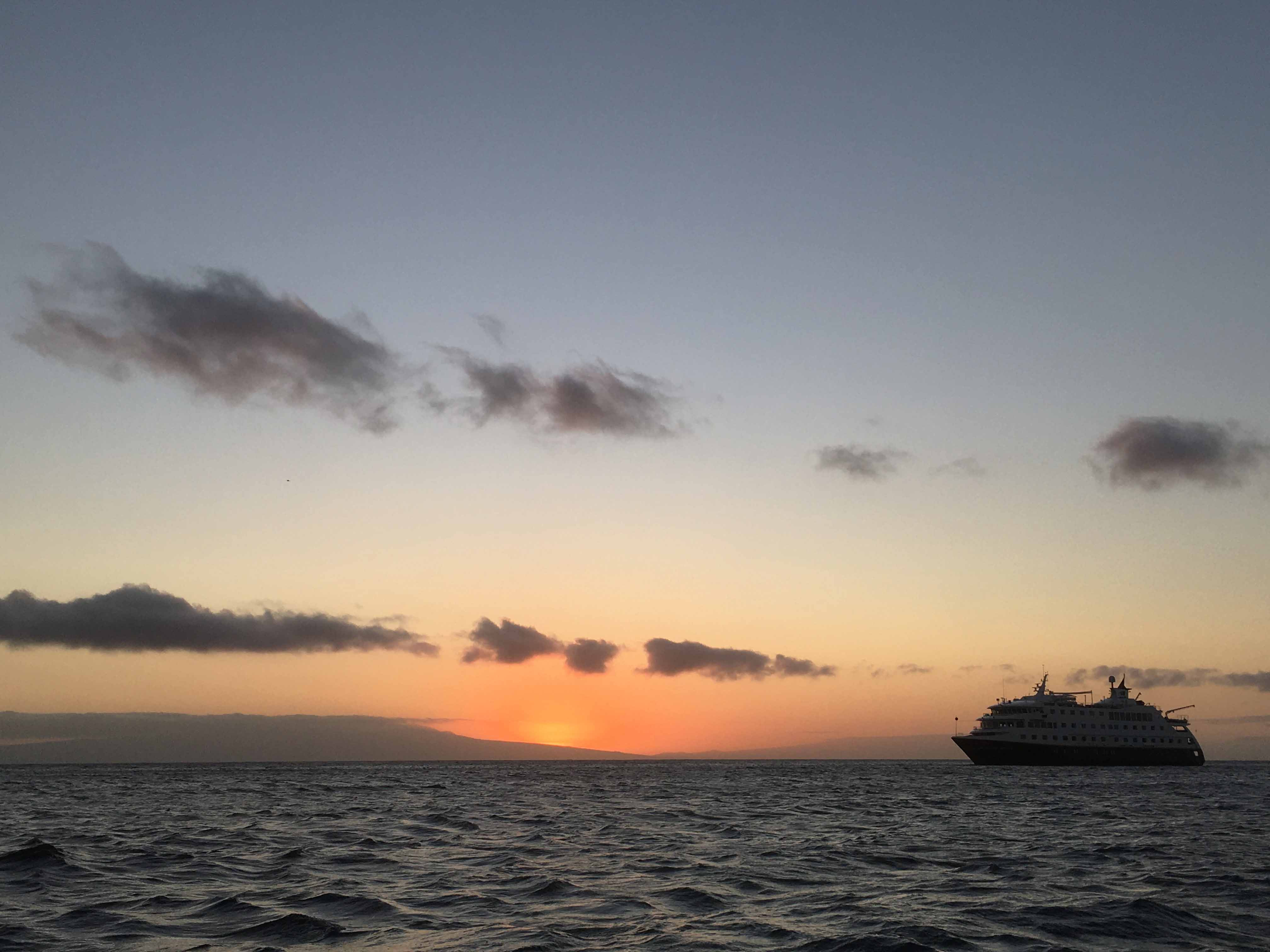 We started the day with excitement as we landed on the beautiful, pristine coast of Isla Genovesa - a true birder’s dream. Along the sandy beaches and steep cliffs of Darwin Bay, we were surrounded by an incredible array of birdlife. Frigatebirds soared closely overhead with their red pouches on full display, while Nazca and blue-footed boobies nested along the rocky ledges. Swallow-tailed gulls called out as we walked past. In the distance, we saw the stoic and elusive short-eared owl. The island was alive with color, sound, and constant movement. Between our excursions to Isla Genovesa, we snorkeled near Prince Philip’s Steps and discovered a vibrant world beneath the waves. Schools of fish swirled around us, a fur seal turned in the water as if dancing on cue, and sea lions relaxed nearby. As our last snorkeling adventure came to a close, we spotted a sea turtle resting calmly in a crevice. As the sun retreated into the sky on our last return to National Geographic Endeavor II, we reflected on the sheer magnitude of what we witnessed on our last full day. Isla Genovesa, like the other islands, gave us a connection to a sacred world. The harmony between land, sea, and sky reminded us how deeply interconnected, vital, and fragile these ecosystems are. Watching birds tend to their nests and marine life swim effortlessly, we were struck by how little space there is between wonder and reverence. We recognized that our journey wasn’t just about observing unique wildlife, it was about feeling part of something grander and beautifully ancient.