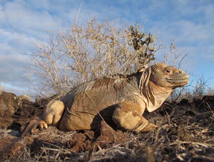 In the afternoon, we dropped anchor at Sombrero Chino Island. This Island is the dream of a geologist, since is one of the largest spatter cones in the world and is situated off the eastern coast of Santiago Island. At this place we organized deep water snorkeling trips, beach outings and Zodiac rides. The flora and fauna of the area is well adapted to live on a desolated lava field where it seems life could not be possible, but the Galápagos demonstrates the most extreme habitats species can thrive. Some of the highlights in our visits were the penguins, sea lions as well as big schools of yellow tailed razor fish.