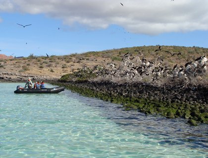 After lunch, we prepared an activity for our young explorers, who had the chance to put their creativity in practice by painting Galapagos hats. They had a fun time drawing and coloring iguanas and tortoises on their hats. Later on, some of our guests went for Zodiac rides, where they spotted a hunting penguin, popping up for a breath while another one was resting on the volcanic coast of Santiago. We witnessed a very important part of a penguin lifestyle, as they were meticulously looking after their feathers, a necessary daily activity to maintain waterproofing and insulation. Later on, we came on board to learn about the role that the Lindblad Expeditions – National Geographic Fund plays in keeping the Galapagos pristine, and how our responsible travelers are contributing towards a sustainable future in this unique world heritage site.