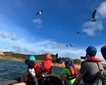 Our morning Zodiac operations presented a unique opportunity to experience these seabird colonies amongst a cacophony of calls from Bear Island's feathered inhabitants. With lots of keen eyes on the water, we were able to spot some less common species, including gannets, puffins, a razorbill, and a great skua feeding on a guillemot egg. The average clutch size for guillemots is two eggs, which are a conical shape to prevent them from rolling off ledges. Adults were observed facing toward the cliff to protect their eggs from predators.