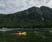 The day began at anchor in Bailey Bay, a lovely secluded cove, with sunny skies and terrific reflections. During the morning, we participated in a variety of activities. Kayakers paddled around the ship and shorelines and were treated to the sight of a humpback whale lazily plying the waters. Expedition landing crafts zipped around on tours of the area, allowing those aboard to photograph the whale and some wildflowers. Hikers headed to shore, where they hit a trail that angled steeply into the forest. After passing a meadow, the hikers crossed a waterfall that plunged across the trail, and soon arrived at a stunning view. A lake fed by snowmelt rested under the mountains and a river poured off the cliffs, tumbling a few hundred feet to the bay below. After donating blood to the local insects, the hikers continued along the edge of the lake. They passed huge boulders with ice nestled in the shade, creating a natural air conditioner which was welcome on this "hot" day. Once back on the ship, our Global Explorer (age 11) joined the staff for a plankton tow, where she drove an expedition landing craft and gathered plankton for further inspection. Everyone had a chance to observe active zooplankton under the ship’s microscope.