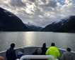 After lunch, we boarded a fleet of five inflatables and cruised through Owl Pass, named for two exfoliating slabs of granite on either side of a projection that collectively resemble a hovering owl’s head. We then waited for the National Geographic Sea Bird to sail through the pass for a unique photo op. As the Zodiac cruises continued, we explored the shorelines of Upper Rudyerd Bay and Punchbowl Cove. We saw four mountain goats, a harbor seal, a rare merlin, a beaver, and a brown bear female with two young cubs, in addition to several species of sea birds.