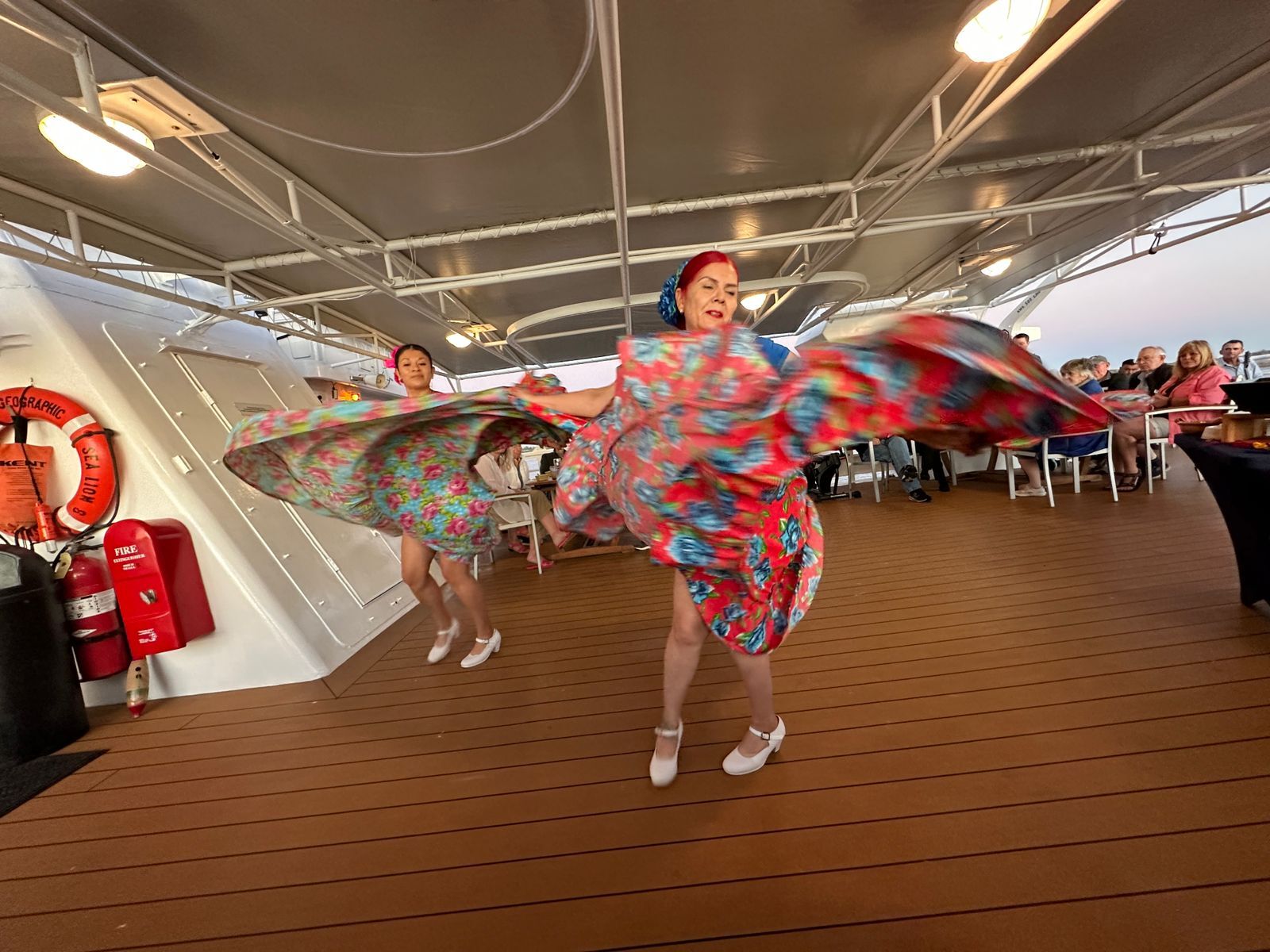 During sunset time our guests enjoyed cocktail hour on the sundeck with live music from local musicians Los Coyotes, and great dancing from Las Flores del Desierto Duet. We danced, we laughed, and we clapped. We finished our day in the north end of Magdalena Bay with a great dinner buffet and some more live music from Los Coyotes.