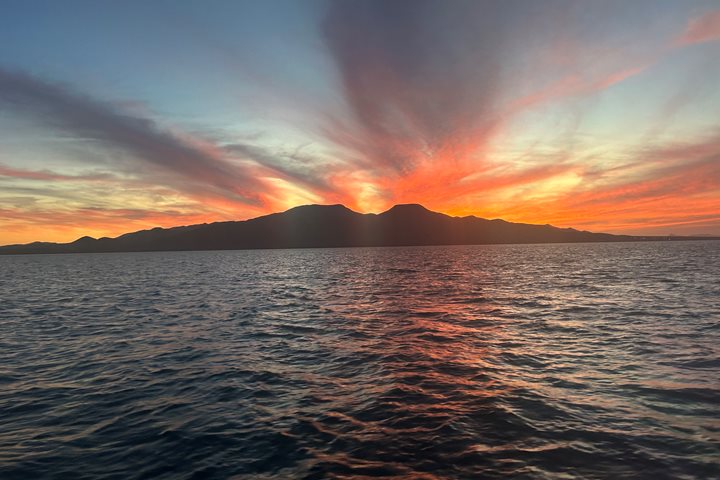 The magic of Baja has continued to stun me. National Geographic Sea Lion began the morning with the sunrise featuring cotton-candy-colored skies, and an incredible backdrop of sand dunes near Puerto Adolfo on the Baja peninsula. After breakfast, guests and staff embarked on a gray-whale-watching expedition aboard pangas driven by local captains. Jaime, the captain of our panga, has worked in the waters of La Soledad for over 30 years. Despite the wind, we witnessed plenty of spyhopping and even a breaching gray whale!