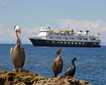 A clear sky after sunrise, coupled with light winds, translated into wonderful conditions for an early morning expedition landing craft cruise to explore the island of Bona.  Travelers who wanted early light for photography started at 6:45 a.m., and others who wanted a more “civilized” departure explored the island just after 8:00 a.m.  The expedition landing craft allowed us close access to the abundant wildlife, which included frigate birds, brown pelicans, blue-footed boobies and brown boobies.  Those birds were seen nested on steep rock formations, diving for fish or playing in midair.