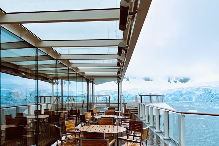 I looked outside at the massive tabular icebergs and spotted hundreds of Antarctic petrels resting on top of one. A mass of them rose up and flew by. It was quite a spectacle, given that the winds were strong this morning, and the chill was bringing temperatures well below freezing.