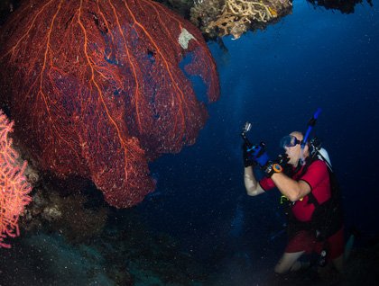 A fantastic symphony of colors was found all over the rocks, and enormous amounts of fish were surrounding us all the time. The big surprise of the morning was the presence of sea birds that decorated the surface of the ocean when we were heading back to the National Geographic Endeavour.