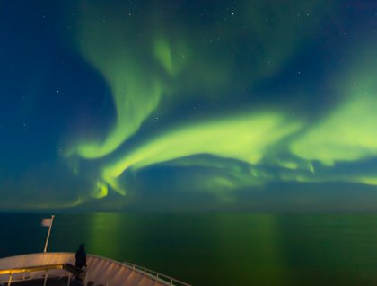 At sunrise, we entered a gorgeous little inlet named Gut Bay and were quickly blown away by the scenery. A massive glaciated peak loomed above us, and tall trees lined the shoreline in every direction. We were here to wake up and do some scenic cruising, and this spot did not disappoint. A full rainbow added to the morning’s excitement as we headed out into Chatham strait.