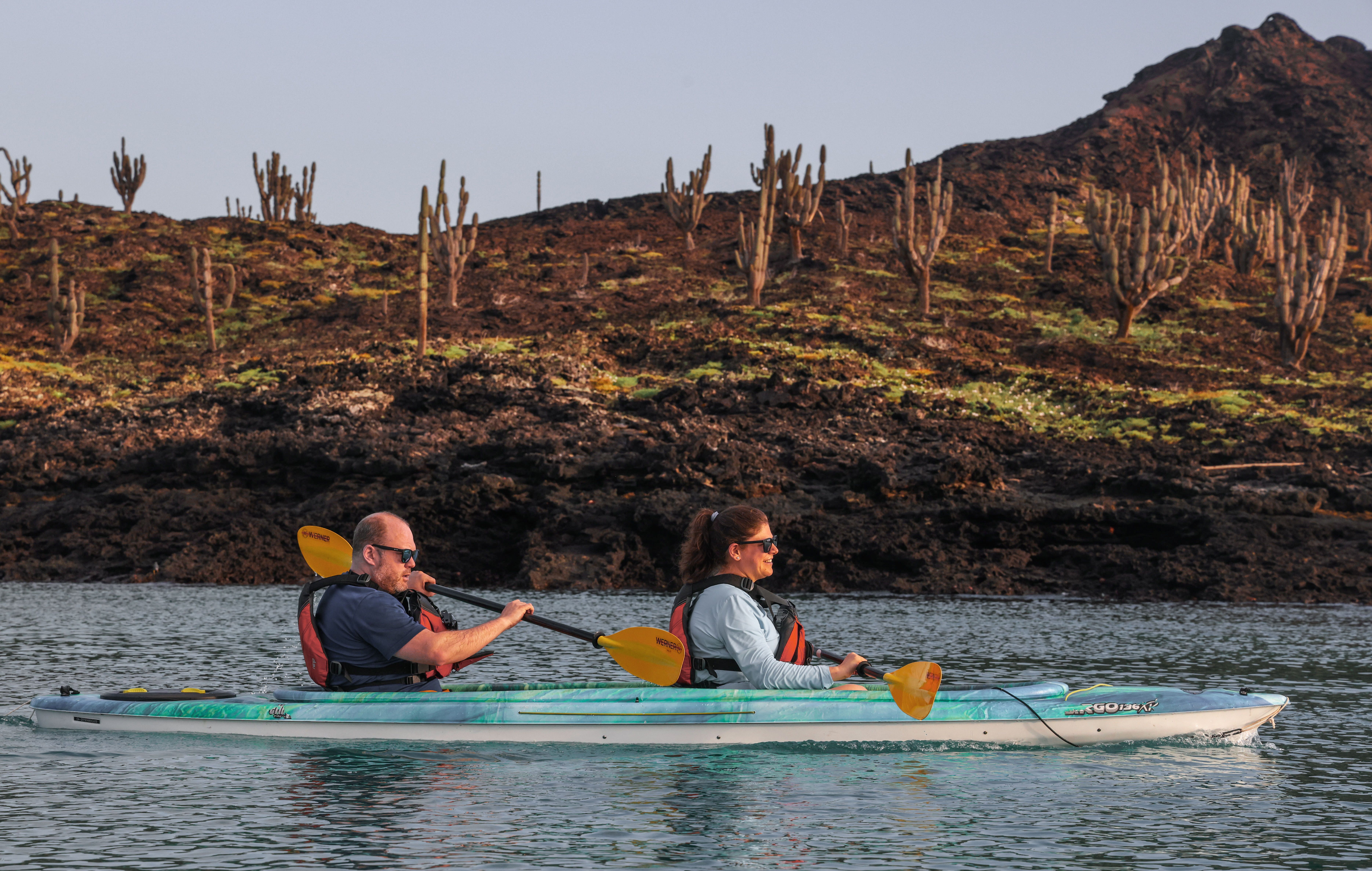 For our second full day of expedition on board National Geographic Islander II, we anchored at Chinese Hat, a satellite islet off the coast of James Island. We started our morning with some kayaking at the rising sun and complemented it with a Zodiac ride exploration and snorkeling; all of this while having a complete view of the monogenic cinder formation and the lava fields from James’s coastline.
