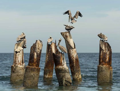 Once everyone was on board, we headed towards Bainbridge Islet to observe from the sky deck the beautiful brackish water lagoon, home for Flamingos. After lunch, we had a dry landing on Sullivan bay, a visitor site on Santiago Island, where a great hike was offered. What an incredible place to talk about geology. We walked over pahoehoe lava, a flow that looks like it came out yesterday, but dates back to 1897! The shapes and texture of the lava flow is amazing, and we can see the first arrival and establishment of plants in this place: mollugo plant and lava cactus, and nothing else grows on top of the barren solid rocks. Charles Darwin visited Santiago Island in 1835, and like him we are marveled with the sight of lava lizards, Galapagos doves and Darwin finches. We finished our day with a beautiful sunset. After the daily briefing, the guests of the National Geographic Islander enjoyed a preview of their trip presented by the Video Chronicler, Dexter Sear, with amazing footages of this incredible trip! The day was not over, and tonight a delicious barbecue dinner will be offered at the sky deck, where we can enjoy star gazing afterwards. Only at the Equator during this time of the year can we can see the Southern Cross and the Big Dipper at the same time, constellations from both the southern and northern hemispheres. What a day, full of awesome memories, and more to come on this once in a life time trip, in a place that is known as the last Pristine Paradise on Earth!