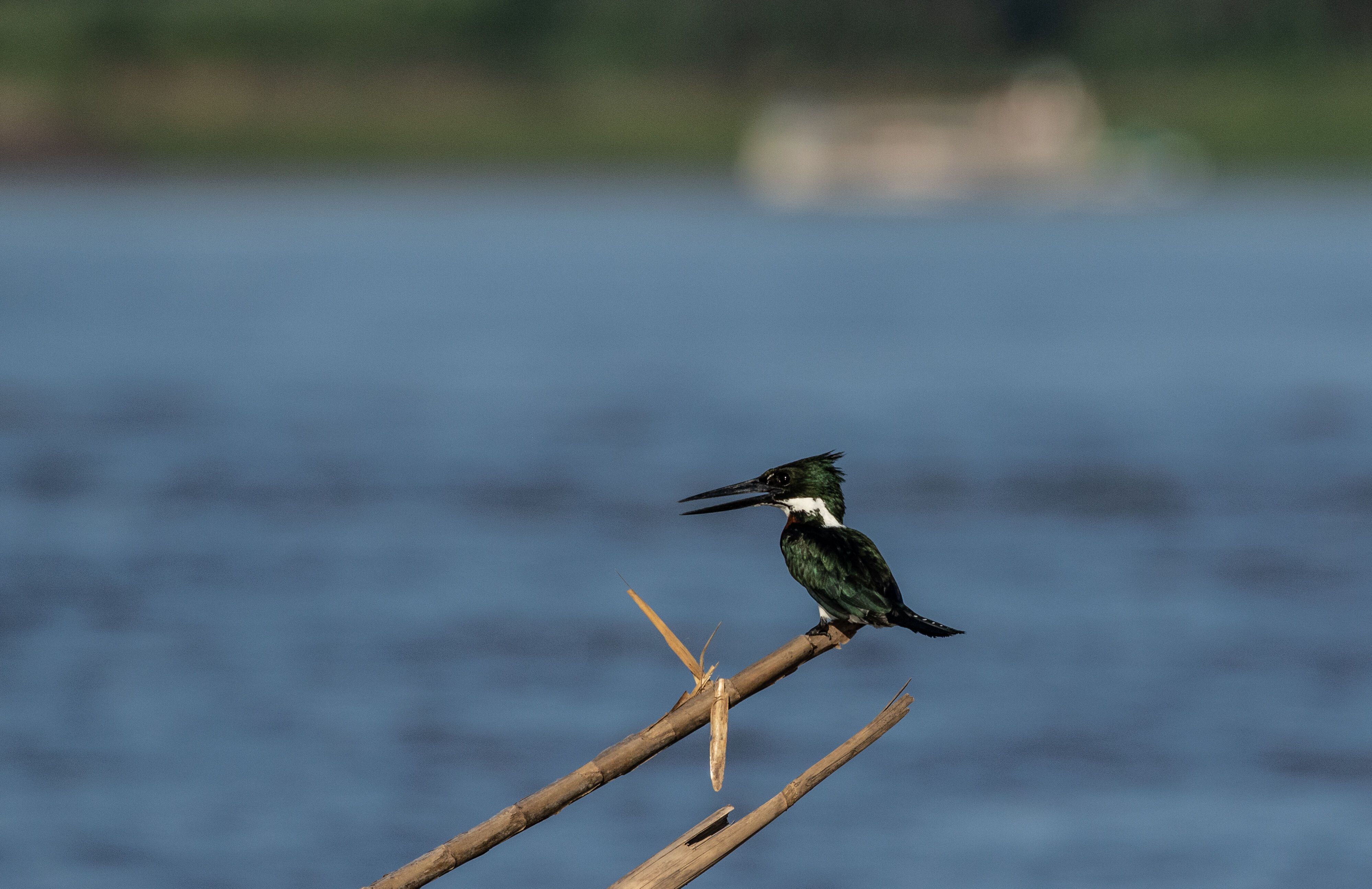 We started the morning with a pre-breakfast wildlife exploration along Clavero Lake, a small tributary of the Ucayali River. We spotted several species of birds, including the black-collared hawk, pygmy kingfisher, capped heron, and white-winged swallow. This skiff ride in the early morning allowed us to see birds as they were just becoming active for the day; some of them were still near their nesting grounds at that time.