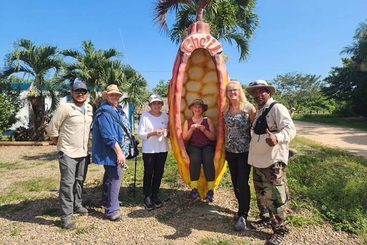The sun eased above the horizon and gently kissed the calm, mirrorlike sea, greeting National Geographic Quest as she lay at anchor just east of the mouth of Monkey River. This is the largest estuary in southern Belize, and our destination for this morning’s adventure. This winding waterway did not disappoint, as guests enjoyed great views of egrets and herons on the edges of the river, parrots and toucans overhead, while “garobos” — male green iguanas sporting their orange and black breeding colors — sunned themselves on the treetops. After returning to the ship and enjoying a delicious brunch, it was soon time to gear up for a final afternoon of snorkeling and diving off Laughing Bird Caye. Some guests snorkeled among the beautiful coral reefs that surround this small island, while others floated above the corals in kayaks. Everyone savored the tropical flavors of fruit punch and snacks from the hotel department. We finished the day with a slideshow of guest and staff photo memories from our Belize adventure.
