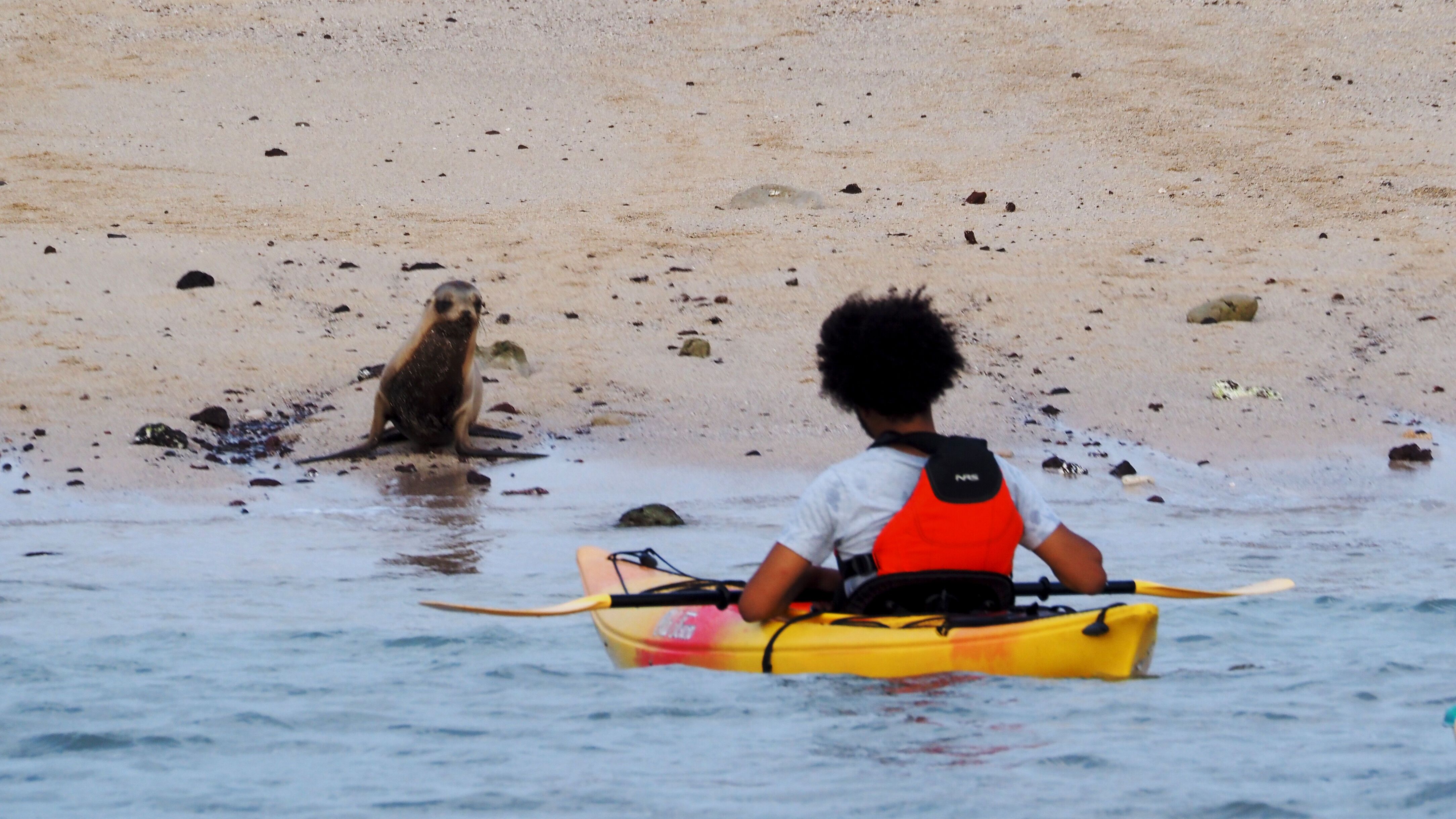 Today was the last day of our expedition, and we made the most of it. We started the day with an early kayaking session to explore the coast of the island’s protected bay. On land, we saw unique Santa Fe land iguanas near the massive prickly pear cacti of the Galapagos. Later, we enjoyed a wonderful snorkel in the crystalline water of the bay. We swam with turtles, sea lions, sharks, and a great variety of fish.