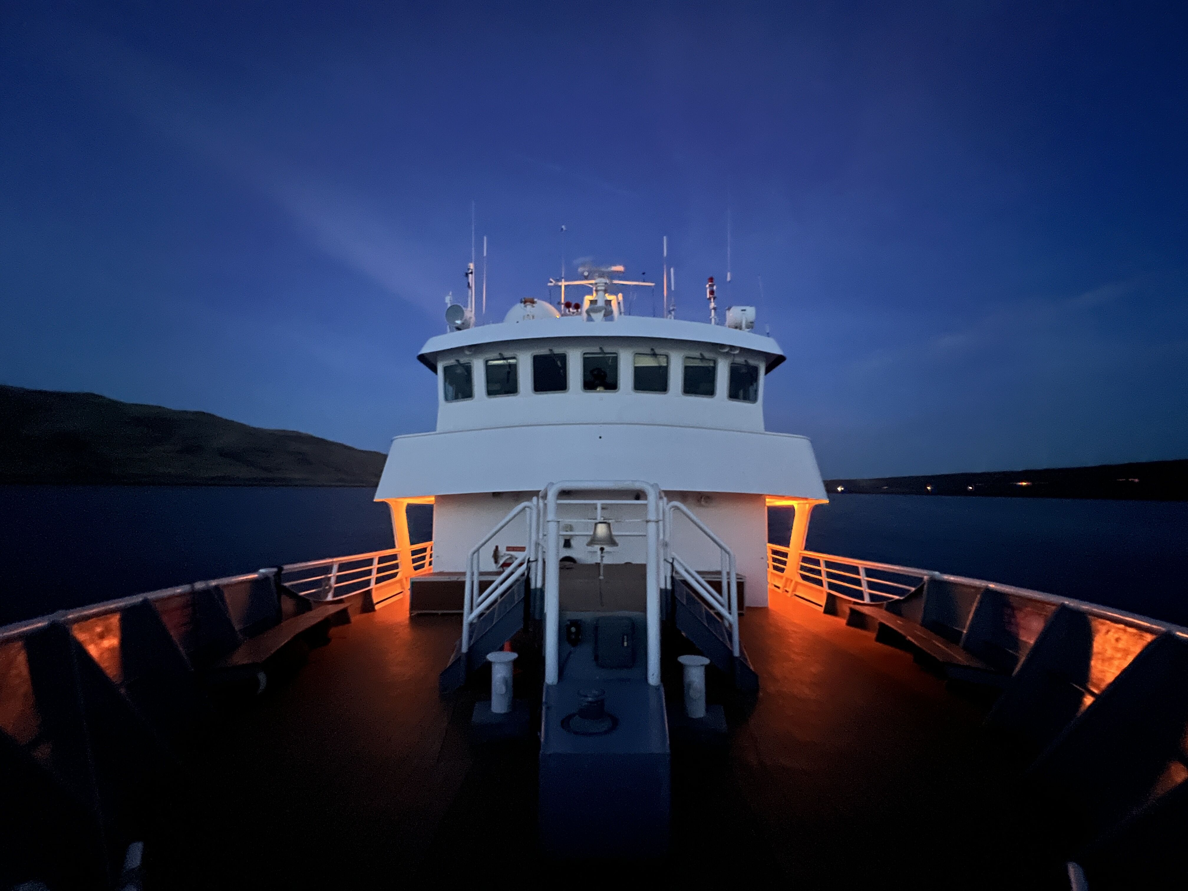 Blessed with gorgeous sunny weather, we entered the Columbia River from its largest tributary, the Snake. Sailing south then west, we approached Wallula Gap where floodwaters from Pleistocene Lake Missoula backed up as they ran into the narrow gap in the Horse Heaven Hills. Water ponded east of the hills to form an ephemeral lake whose sedimentary record chronicles at least forty of these catastrophic floods.