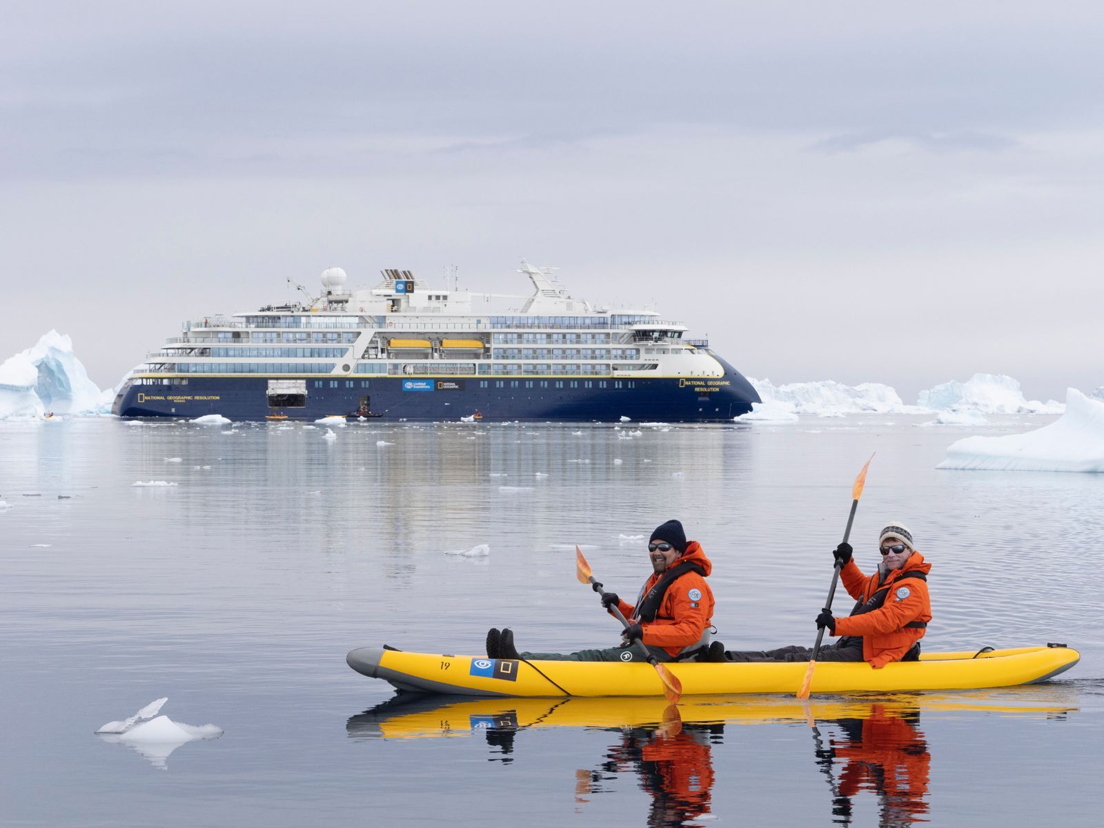 Charging our way north after going as far south as National Geographic Resolution has ever gone south of the Antarctic Circle, we spent an early morning in Crystal Sound in Skog Bay. The bay is named after the prolific explorer, inventor, and designer of National Geographic Endeavour and National Geographic Resolution, Captain Leif Skog.