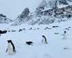 The shore of Cuverville Island was just visible through the snow…well, almost. Our Zodiac headed to shore, weaving through large chunks of ice as the shore team guided us to a proper landing – even wading out into thigh-deep water to do so! On shore, we quickly removed our life jackets and were immersed into a wonderful winter landscape of falling snow and gentoo penguins. What a magical morning.