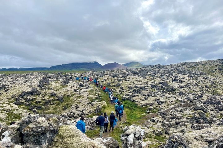 After a comfortable morning with a fascinating presentation by National Geographic Photo Expert Paolo Verzone, we arrived at Grundarfjörður. This small town is perhaps best known for the iconic mountain sitting on its doorstep. Kirkjufell, or Church Mountain, was famously featured on Game of Thrones as Arrowhead Mountain. After lunch, we disembarked National Geographic Explorer to visit either the Berserkjahraun lava field or Kirkjufellsfoss Waterfall. Berserkjahraun is an old lava field that is still covered by the mosses that settled it 4000 years ago. On our hike, we were treated to some delicious and healthy blueberries and crowberries. The second group was treated to the lovely sight of Kirkjufellsfoss, or the waterfall of Kirkjufell. As the name implies, it is situated very close to the roots of Kirkjufell Mountain, which certainly made for an impressive backdrop to the waterfall. In the afternoon, both groups were reunited in the beautiful church, Grundarfjarðarkirkja, where we were treated to an amazing concert by one of Iceland’s best-known musicians, Hafdís Huld. After the concert we all returned to the ship where we were expected by Captain Peik Aalto, who gave us a warm farewell before our last dinner aboard National Geographic Explorer for this expedition.
