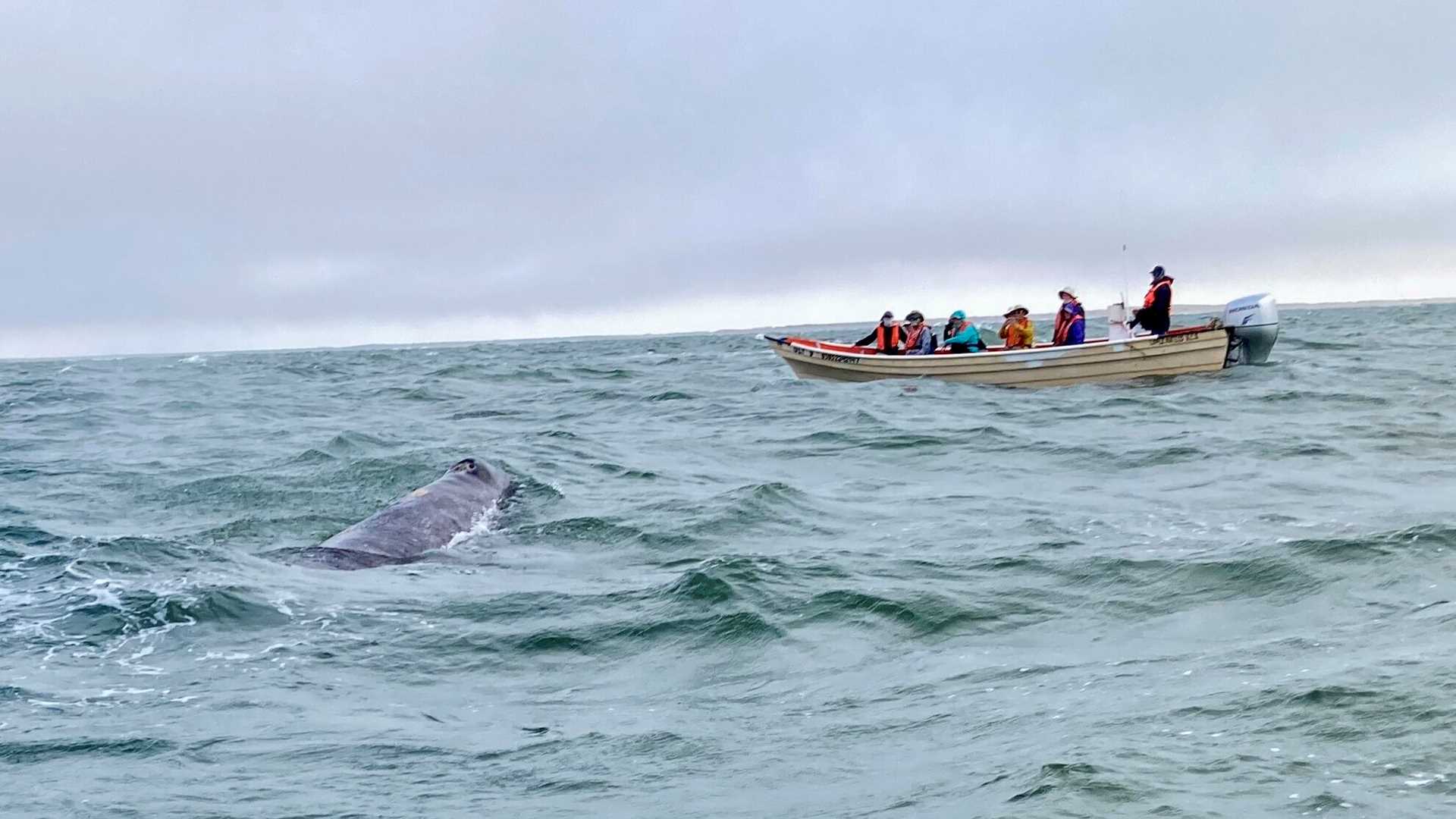 After lunch, the hotel manager opened the Global Gallery. Then our guests gathered on the bow to enjoy the beauty of the Hull Canal. We spent the afternoon whale watching with pangueros from Lopez Mateos. At Boca de la Soledad, we spotted a couple of gray whale females with their calves.