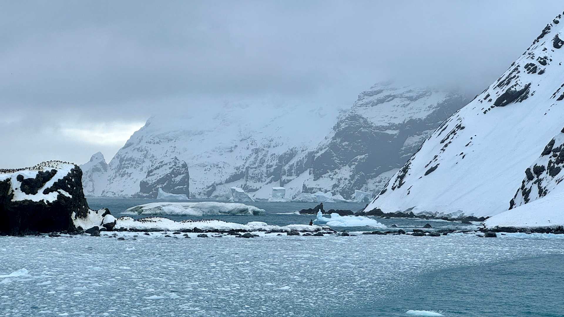 A blustery day (gusts of 40 knots) around the island did not allow for a Zodiac cruise but we continued around the coast of Elephant Island and checked out Cape Valentine and Cape Lookout before heading across the Bransfield Strait to the Antarctic Peninsula.