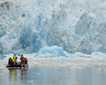 Today, we embarked on a voyage through the breathtaking Endicott Arm, a 30-mile fjord carved by ancient glaciers. As our vessel glided through the jade-green waters, towering granite cliffs rose on either side, with cascading waterfalls fed by melting snowfields. The fjord's serene beauty was punctuated by the occasional splash of harbor seals diving from ice bergs and the distant sight of mountain goats navigating the rugged terrain. Approaching the terminus of the fjord, the awe-inspiring Dawes Glacier came into view. Standing over 500 feet tall and half a mile wide, its icy facade shimmered in hues of blue and white. We boarded Zodiacs to get a closer look, maneuvering through a maze of icebergs, each uniquely sculpted by nature. Suddenly, a thunderous crack echoed as a massive chunk of ice calved from the glacier, crashing into the water below and sending ripples across the fjord—a humbling reminder of nature's power. The journey through Endicott Arm was more than a scenic cruise, it was an intimate encounter with the raw, dynamic forces that shape Alaska's wilderness. The memories of shimmering glaciers, playful seals, and towering cliffs will linger, a testament to the allure of this pristine frontier.