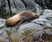 Early in the morning National Geographic Venture sailed into Holkham Bay, and made a turn into the Endicott Arm in the Tracy Arm-Fords Terror Wilderness area. We sailed up and into Fords Terror, taking in the beautiful scenery and sheer cliff walls of this part of the fjord. A black bear was spotted near a waterfall and after eating a bit on the shore, it began to climb the seemingly impossible steep cliffs with ease. After lunch National Geographic Venture was positioned with a distant view of the Dawes Glacier, and everyone set out for a Zodiac tour through the ice that had calved off the face in the past few days. We saw harbor seals on the ice at a distance, and a few swimming in the water. The weather was ever changing, and there was some pelting rain, but everyone had a great time in the midst of all the stunning wilderness.