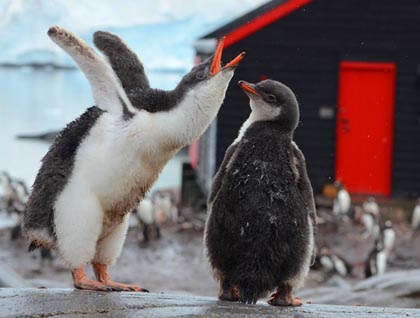 In the afternoon, the National Geographic Endeavour was repositioned in order to reach our next destination, Punta Suarez, which is located further east of Española. This is a part of the island that was uplifted from the ocean, and the contrast of abundant cliffs, boulders and flat terrain were the result of those incredible geological effects. We disembarked onto the small dock that leads to white beaches, where a large number of young pups swam freely under the watchful eye of a big male sea lion. At almost every step we took there was a lava lizard or a marine iguana to avoid; due to their dark coloration they blend perfectly well against the black rocks of the shoreline. Walking inland, we observed the abandoned nesting grounds of the endemic waved albatrosses; we found remains of broken eggs left behind many months ago when the new hatches appeared, and subsequently abandoned Española to come back after four or five years as adults birds. Because of the high temperatures during the first months, albatross migrate away from Galapagos, but we held out hope that a few might still remain under the bushes and trees. Our efforts were rewarded, and we finally found a couple flying directly over us, as well as one last juvenile that still was not ready to leave Galapagos, because its plumage was covered with fluffy feathers. This magnificent bird was flapping its wings, and probably in few more days will start an incredible journey that takes many years along the southern part of South America.