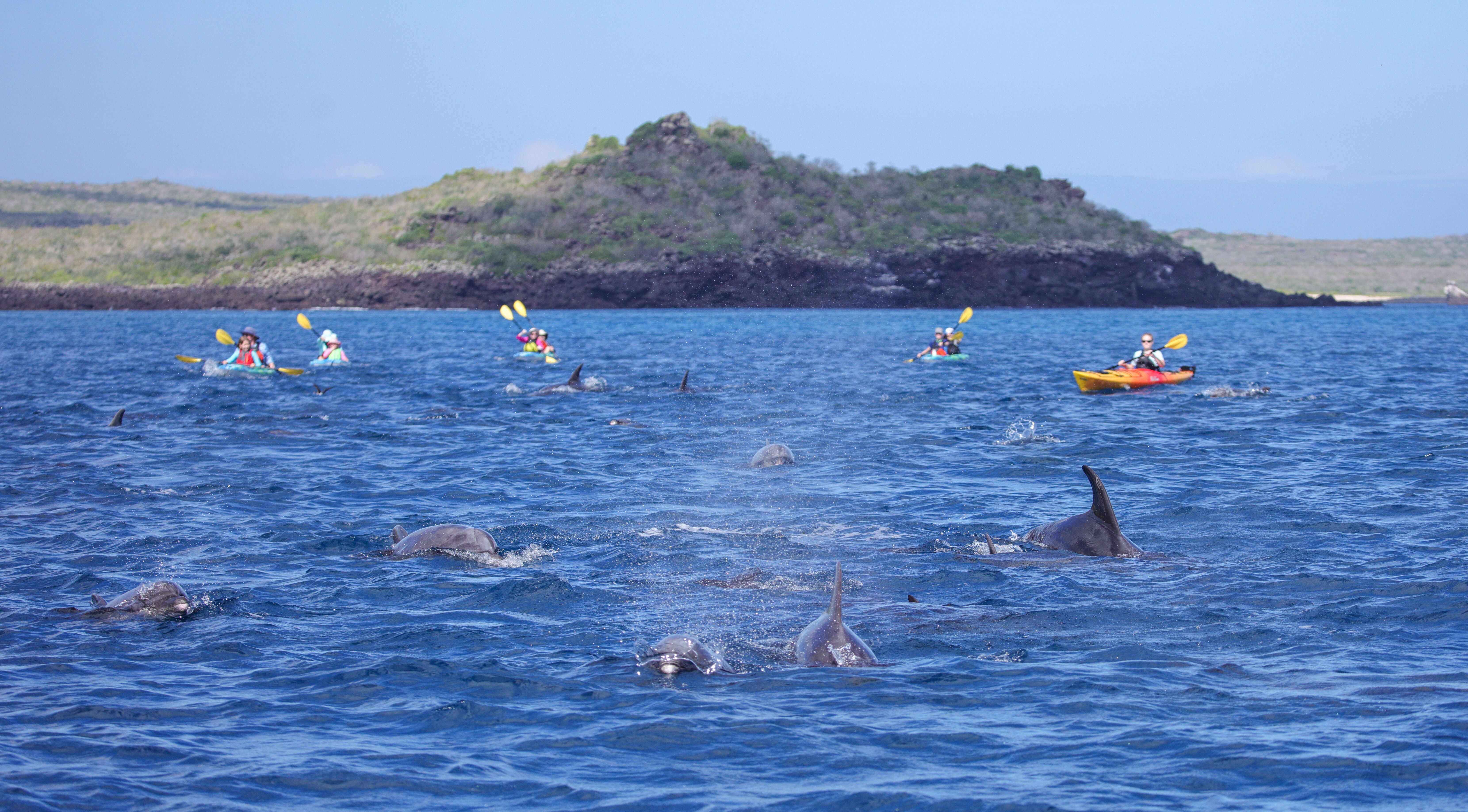 We awoke with a view of the beautiful landscape of Española Island, one of the oldest islands in the archipelago and home to a diverse group of endemic species. We started with a peaceful walk on a soft, sandy, coralline beach and then went kayaking. We followed this up with a deepwater snorkeling excursion where we saw a nice array of colorful fish and volcanic rocky reefs.