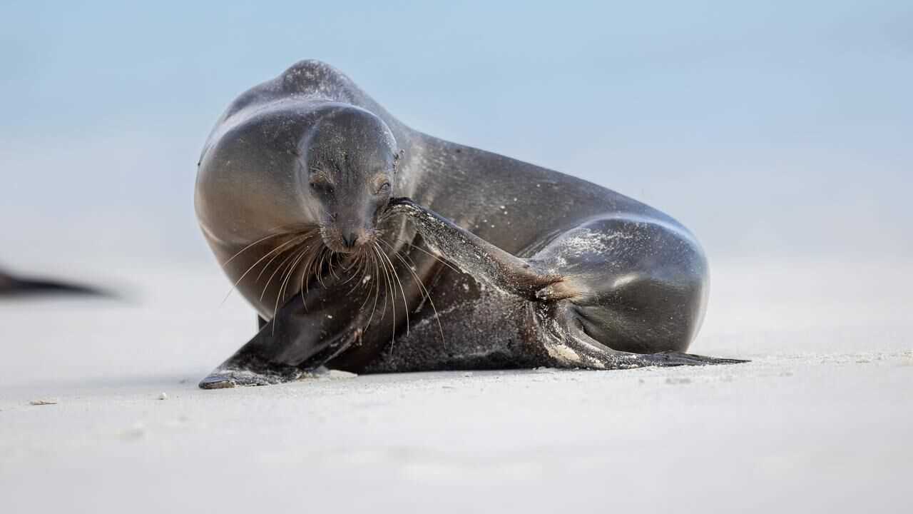 Espanola Island has one of the most beautiful bays of the archipelago, Gardner Bay. This morning, we enjoyed the perfect weather and water conditions here, from kayaking along the coastline to snorkeling in crystal-clear waters. Some preferred to just swim or relax at the white coralline beach of Gardner Bay and were happy to share it with a colony of sleepy Galapagos sea lions.