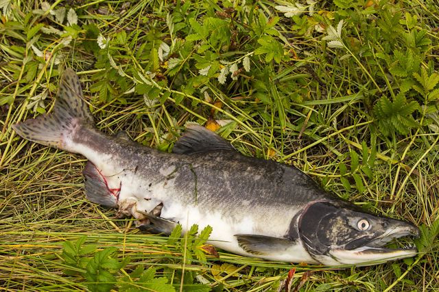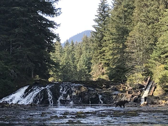 During the morning, we explored the scenic cove of Pavlof’s Harbor on the southeast shore of Freshwater Bay, Chichagof Island, and area known for its healthy salmon stream. We were optimistic that we might still see a bear during our last day exploring Southeast Alaska. We were not disappointed! At the base of a small waterfall, we spotted a coastal brown bear casually gorging itself on salmon as we watched, spellbound, from the safety of our expedition landing crafts only a few yards away. The bear, enjoying its meal, seemed oblivious or at least indifferent to our presence. For nearly an hour, we watched the animal devour fish after fish until it calmly walked up the river bank rocks and into the forest. Late summer and early fall is the time to fatten up and prepare for the long winter ahead. Come November and the onset of snow, brown bears will leave the coastline and head to higher elevations near or above treeline. Biologists debate whether bears truly hibernate or just den up and sleep during the winter. Pregnant sows will give birth to tiny, one-pound cubs while sleeping within the den and nurse them until spring. We returned to the ship after our morning adventures for lunch and were relaxing in the lounge when another bear was spotted on the beach south of Pavlof Harbor. Although more distant than our first encounter, we all enjoyed another exceptional sighting of a coastal brown bear. But the wildlife viewing wasn’t over yet! As we sailed south along Chatham Strait, we encountered a pod of killer whales swimming nearby. Crusing alongside the pod, we counted a group of about ten that included one large male. His large dorsal fin rose nearly six feet above the water‘s surface. Guests spent the remaining time reading or chatting with friends. We wrapped up our day with the captain‘s dinner followed by the guest photo slideshow, which we enjoyed as we sailed toward Sitka through Peril Strait. Have we seen it all? Hardly! But we left with a sense of fulfillment, knowing that we saw a lot! And maybe one day we‘ll return and finally see some elusive moose!