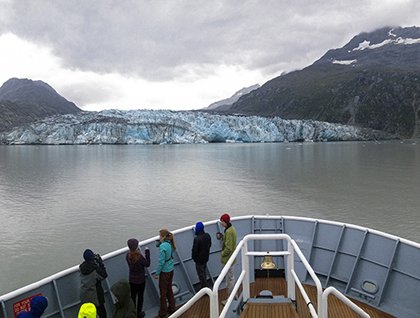 There was not much life to be seen on shore here. The rocky substrate contained very little plant life, indicating it had only recently (geologically speaking, that is) become uncovered by the melting of the glacier that once moved through here. Studies have demonstrated that it can take literally thousands of years to develop a plant-friendly soil in this part of the world. So, it is going to be a long time before this area becomes a green meadow. In spite of that, we saw several snow geese, a flock of brant geese, a pair of white arctic hares, and evidence of ptarmigans and musk oxen.