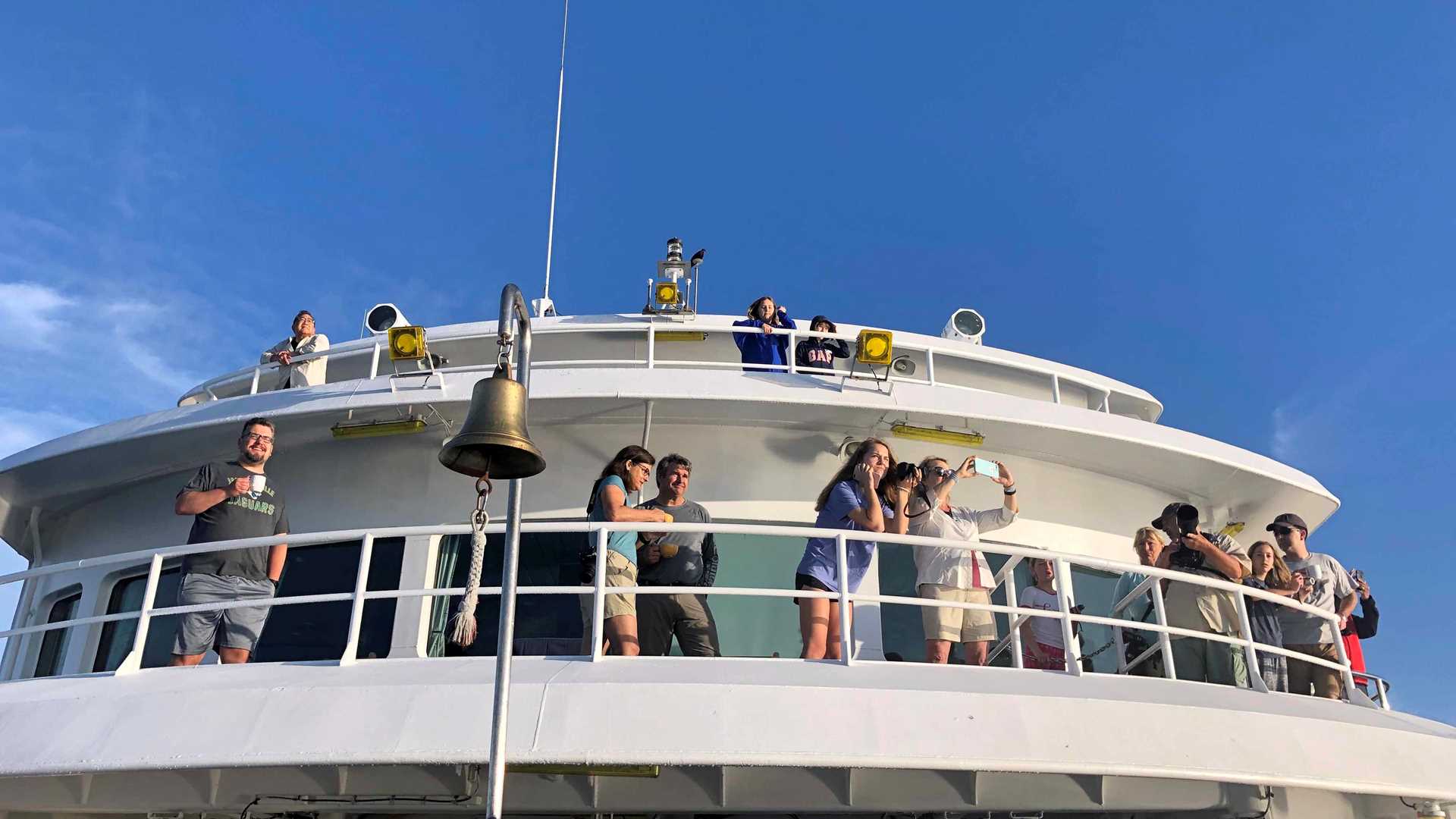 In the afternoon, we visited Punta Vicente Roca, a collapsed caldera that offered the perfect opportunity to talk about geology in Galapagos. Here we also had the opportunity to observe penguins and fur seals. We ended our day wine tasting on the sky deck celebrating that we just crossed the equator in Galapagos onboard National Geographic Endeavour II.
