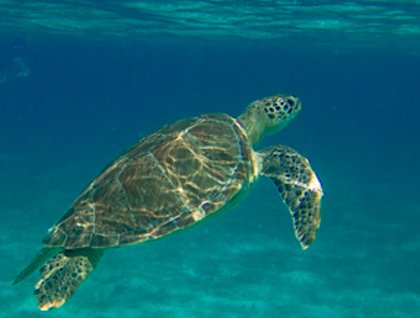 Today we started our day early in the morning at Punta Cormorant on Floreana Island, where we went ashore for our pre breakfast hike. There, we learned about the different material from which we can get sand. During our walk we passed by a brackish lagoon where we spotted several shore birds including the colorful great flamingo. On the leeward side of the point we found a number of sea turtles floating on a shallow calm bay. Some of them were mating, which indicates that the breeding season just started.