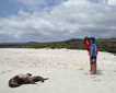 Today our Galapagos Exploration brought us to the Island of all mysteries: Floreana. The best way to begin our journey was with a pre-breakfast hike at Punta Cormorant. After a comfortable wet landing, a world of wildlife started to be appear: young Galapagos sea lions resting on the beach, blue-footed boobies plunging into the water for breakfast feeding, and greater flamingos feeding at the brackish water lagoon area. As we crossed the isthmus of Punta cormorant, we found ourselves surrounded by the calls of the ground finches all over the place. The splendor of the place shone, with a landscape of a white sandy beach, decorated with a charming sunrise.